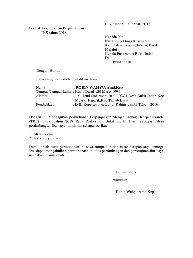 Surat Permohonan Tks Ala Dinkes 2018 Pdf